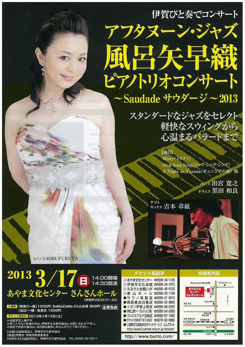 ▼伊賀市文化都市協会:伊賀びと奏でコンサート アフタヌーン・ジャズ 風呂矢早織ピアノトリオコンサート