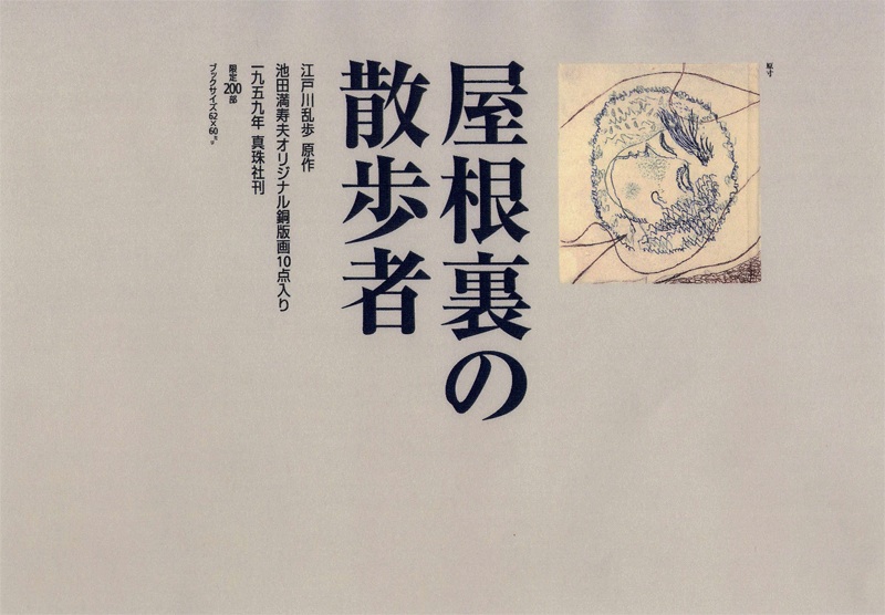 平井通がつくった真珠社豆本『屋根裏の散歩者』は、池田満寿夫のオリジナルエッチング十点を収めていることで知られますが、昭和34年、西暦でいえば1959年の4月に発行されて以来、収録の池田作品にはこの豆本でしか接することができない状態がつづいていました。