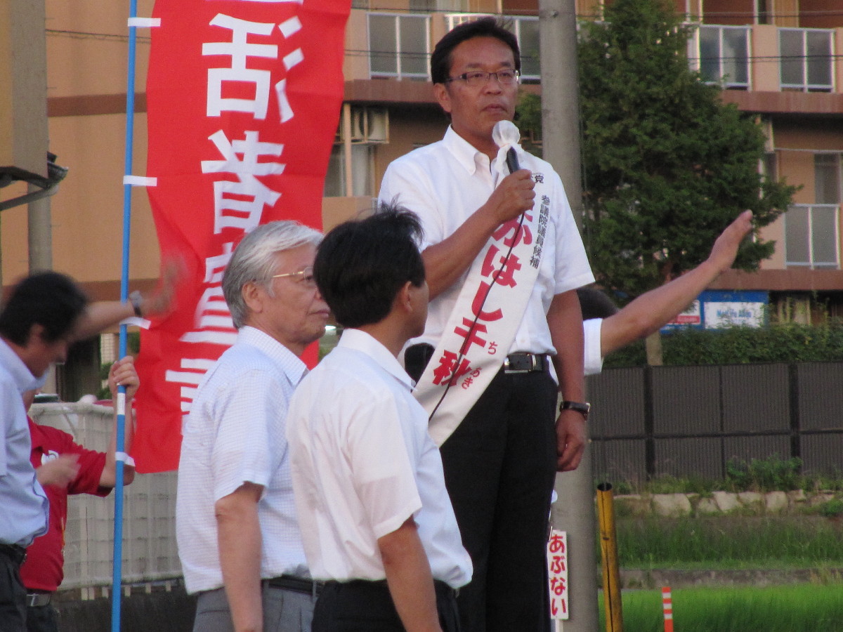 参院選三重選挙区で苦戦を伝えられる現職、高橋千秋先生が最後のお願いに立っていらっしゃいました。