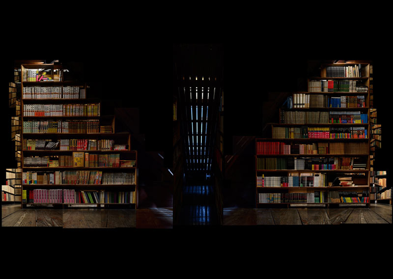 撮影された書棚に並ぶ本は、題字まで克明に読み取ることができ、本(書棚)の持ち主をあたかもポートレイトのように浮かび上がらせました。