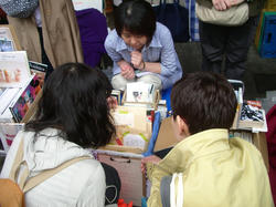 谷根千の一箱古本市は南陀楼さんをはじめ15人の実行委員会が中心だが、必要不可欠なのがボランティアの助っ人たちだ。今年は実に75人もの助っ人が、10周年の一箱古本市を支えている。