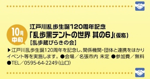 このガイドブックから、乱歩生誕百二十年記念事業をピックアップしておきます。