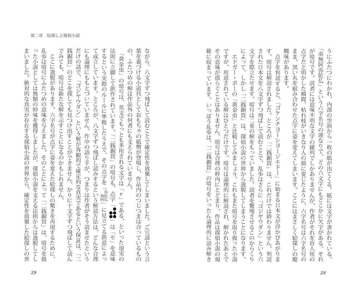 要するに、構想の段階では、六字名号はじつは点字である、という秘密だけが隠されていたのですが、完成した「二銭銅貨」では、その点字にもうひとつの秘密が隠され、暗号にふたつの意味が与えられることになりました。