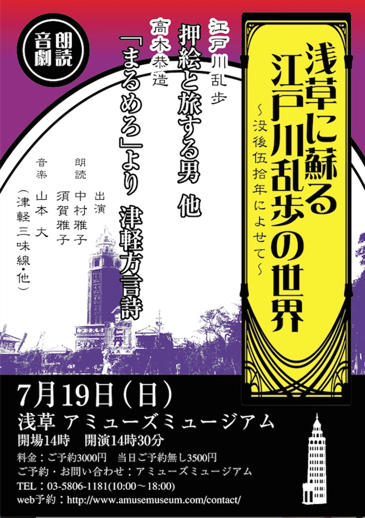 ▼AMUSE MUSEUM:朗読音劇、浅草に蘇る江戸川乱歩の世界!