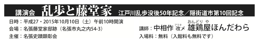 「隠歴史講演会[藤堂家邸]」とあるのが、おいどんの講演会です。