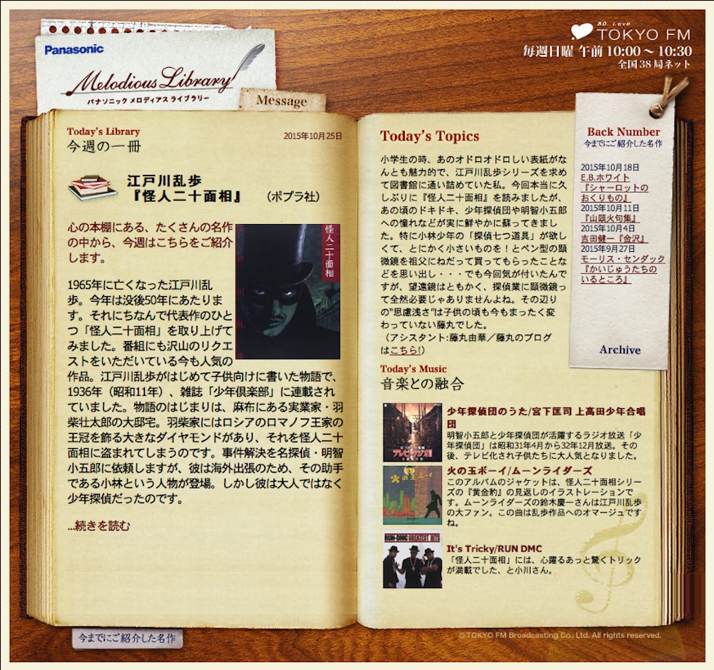 ▼TOKYO FM:Panasonic Melodious Library > 江戸川乱歩『怪人二十面相』