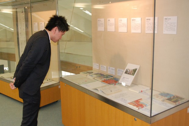 県内の公立図書館などで構成する県図書館協会が企画。戦後を中心に小説や詩、短歌、俳句などの作品を展示している。