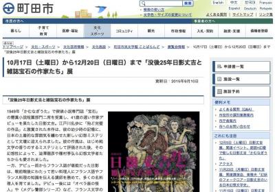 東京都町田市にある町田市民文学館ことばらんどでは、2015年12月20日までの期間で現在「没後25年 日影丈吉と雑誌『宝石』の作家たち」展を行っている。