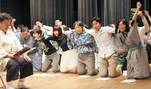 十一月中旬、公演会場となる千葉市中央区の県文化会館では、出演者らが、動きやせりふを確認していた。小笠原さんら狂言師に加え、狂言体験講座を受講した市民や、小笠原さんの授業を受講する千葉大生ら計約二十五人が出演する。