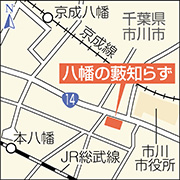 <八幡の藪知らず> 市川市役所から国道14号をはさんだ向かいにある鳥居とほこらに守られた小さな竹やぶ。江戸中期の書物「葛飾記」にも記述が見られ、人が立ち入ってはならない「禁足地」と伝わる。平将門や徳川光圀(水戸黄門)にまつわる伝承が残り、江戸川乱歩の「孤島の鬼」や夏目漱石の「行人」など、さまざまな小説にも迷い込んで出られなくなることの例えとして使われている。