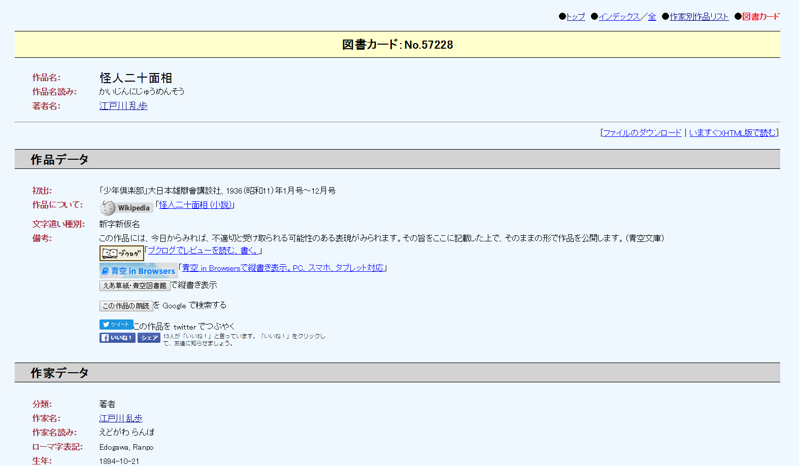 図書カード:怪人二十面相https://t.co/ZSDWg7Ytma #青空文庫