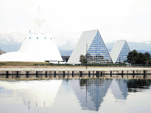 魚津港に隣接する魚津埋没林博物館。富山湾を一望できるこの一帯が蜃気楼展望地点に指定されている