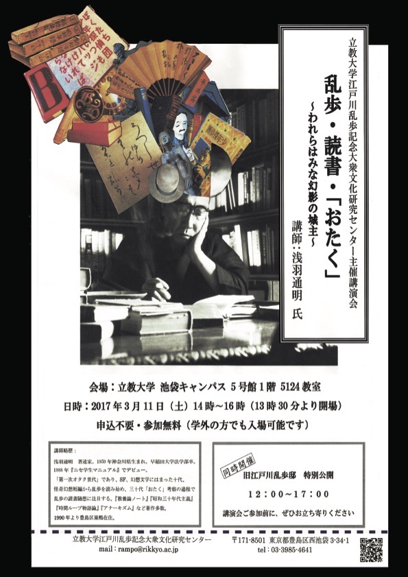 ▼立教大学:江戸川乱歩記念大衆文化研究センター主催|トークイベント「乱歩・読書・「おたく」~われらはみな幻影の城主~」