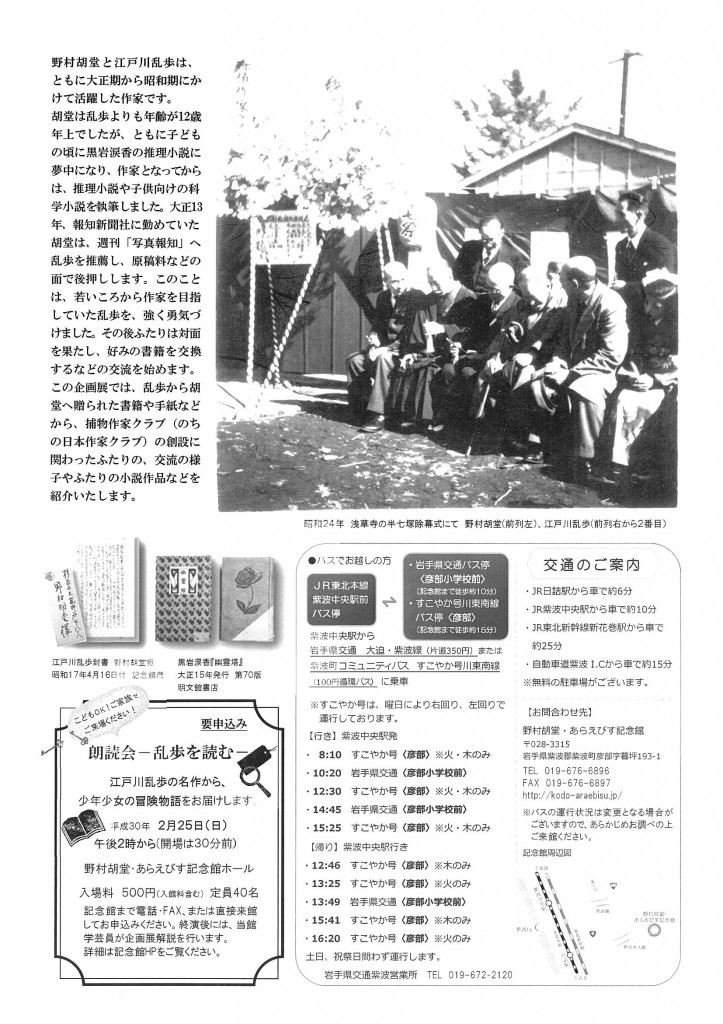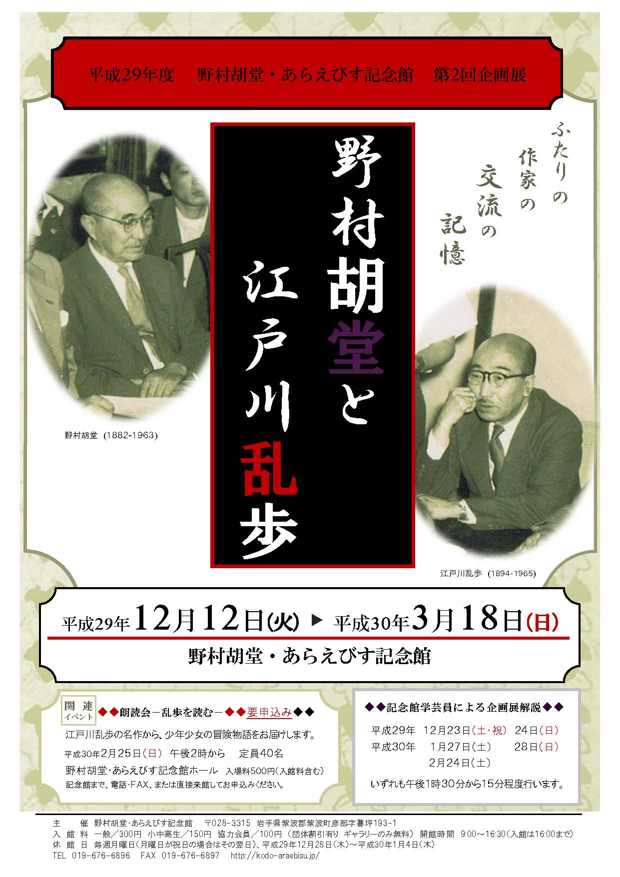 ▼野村胡堂・あらえびす記念館:企画展 野村胡堂と江戸川乱歩【12月12日から】(2017年11月15日)