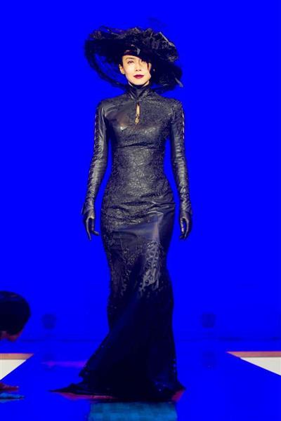 美貌の女盗賊”をイメージしたブラックレザーのドレス姿も披露 (舞山秀一撮影)