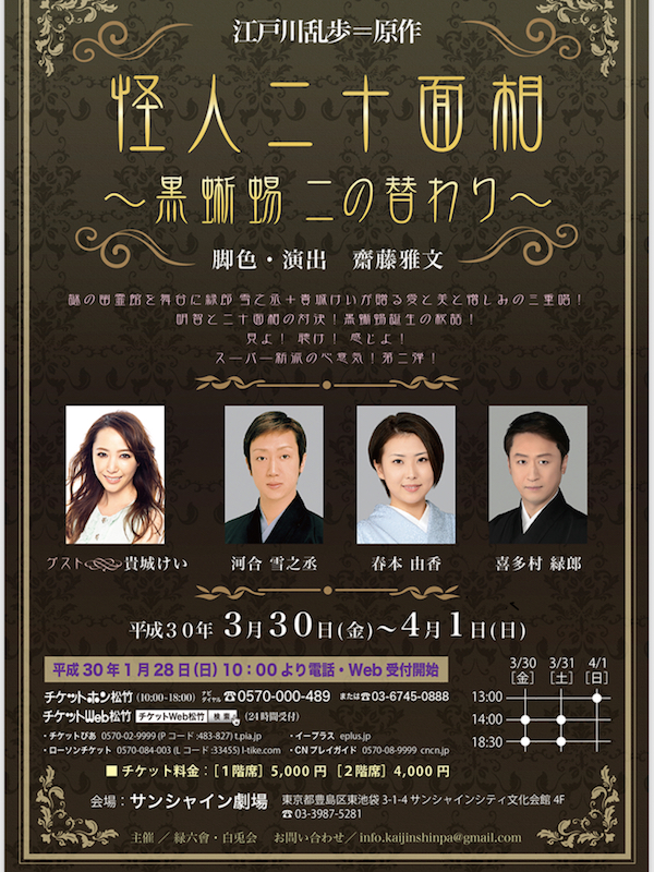 出演:喜多村緑郎、河合雪之丞、春本由香、貴城けい