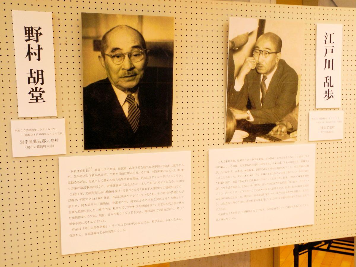「野村胡堂・あらえびす記念館」(紫波町)は現在、企画展「野村胡堂と江戸川乱歩 ふたりの作家の交流の記憶」を開催している。