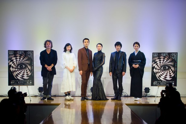 東京での制作発表会見。中谷は本番で使われる想定で作られた黒のドレスで登場 撮影=舞山秀一