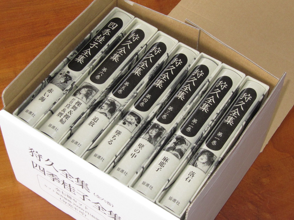 狩久全集が全六巻、四季桂子全集が全一巻、あわせて全七巻がお雛さまのごとくなかよく専用の紙製ケースに収められ、気になるお値段は本体なんと七万円、全巻揃い三百セット限定、とのことです。