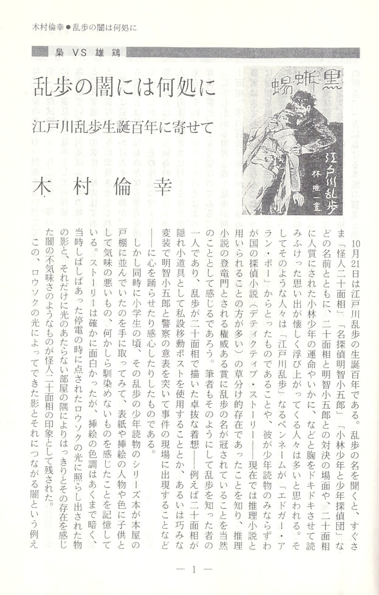 乱歩の闇は何処に 江戸川乱歩生誕百年に寄せて