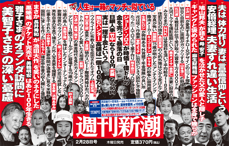 けさ、新聞に「週刊新潮」の広告が掲載されていました。