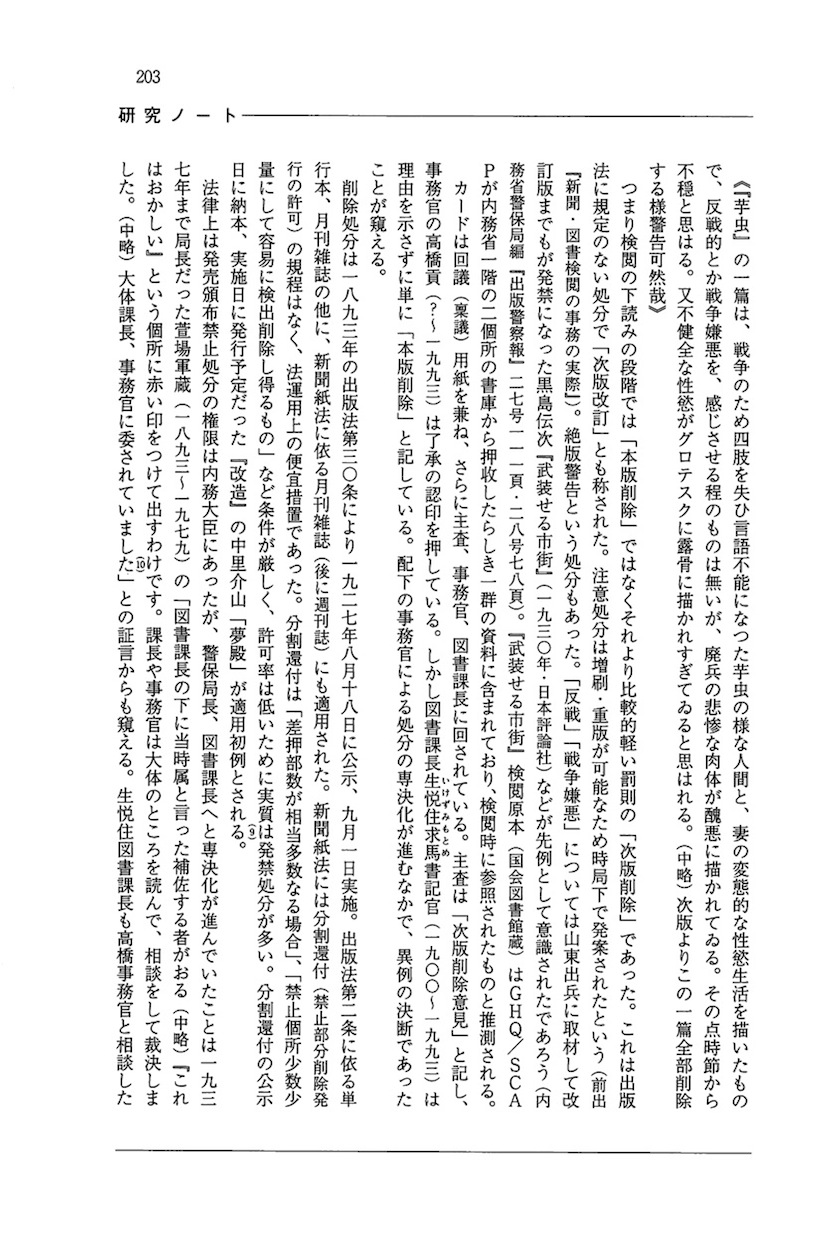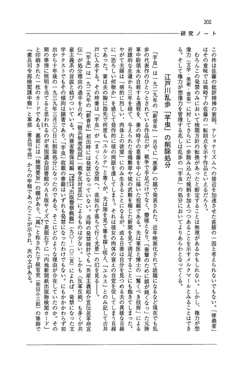 収録の「佐藤春夫『律義者』、江戸川乱歩『芋虫』の検閲」、初出はこちらです。