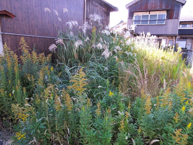 一軒家が取り毀された跡地は、雑草の丈高い繁茂に覆われていた。