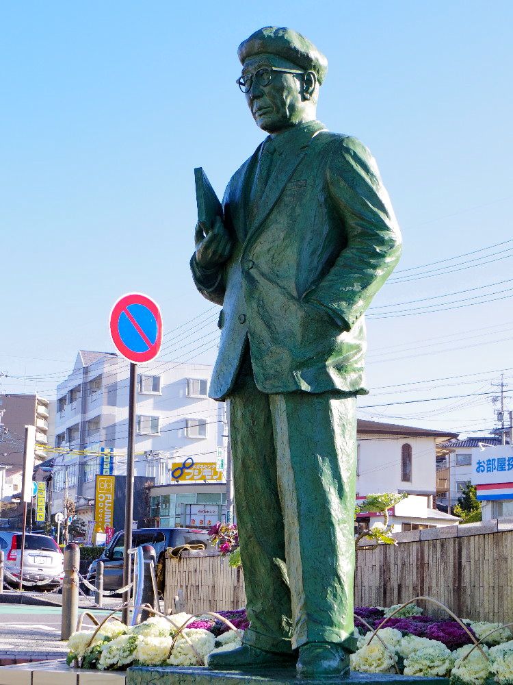 近鉄名張駅を発つ前、東口駅前で午前9時40分に撮影した乱歩像。
