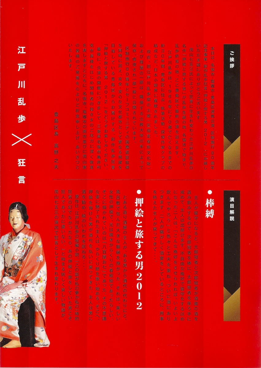 ▼あうるすぽっと:公演情報 > 創作乱歩狂言 『押絵と旅する男2012』