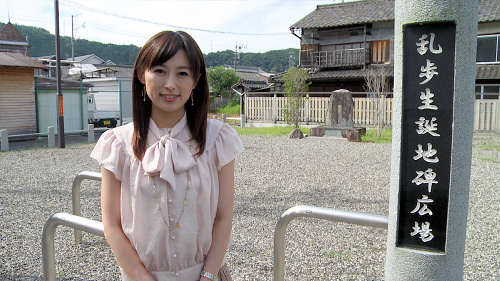 番組の中で乱歩生誕地広場からリポートする場面=アドバンスコープ提供