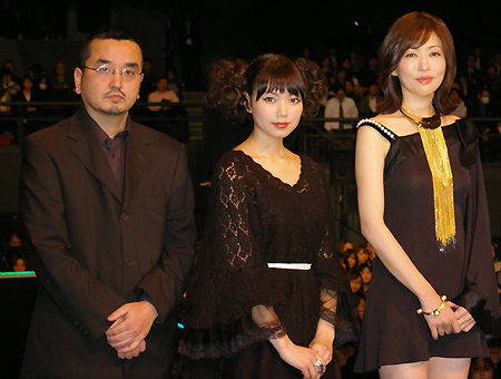 映画「脳男」の完成披露試写会に登場した(左から)瀧本智行監督、二階堂ふみさん、松雪泰子さん
