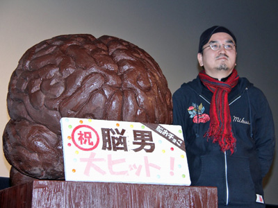 一部がファンにプレゼントされた「脳おチョコ」 - 右は瀧本智行監督