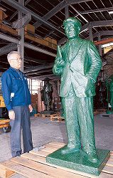 江戸川乱歩の全身ブロンズ像 高岡の「本保」が制作