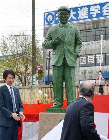 名張駅東口の市有地に設置され、この日は同クラブ会員や平井さん家族ら関係者約100人が集まって除幕式。同クラブの川地清広会長が「市の新しいシンボルができた」とあいさつし、平井さんも「生誕地碑の除幕のとき以上に、像の建立を喜んでいるのではないか」と話した。事業費は約500万円で、像は市に寄贈した。
