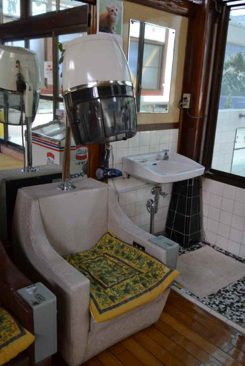 建物は昭和30年代に建て替えられたそうだが、下駄(げた)箱のある玄関から入り口の戸、脱衣場、トイレへと続く廊下、そしてガラス戸をあけると広がる浴室にまで、何とも懐かしさがこみあげてくる風情が漂う。マッサージ機や、髪を乾かすお釜の形をしたドライヤー、そして、あの瓶牛乳もしっかりとあるのだ!