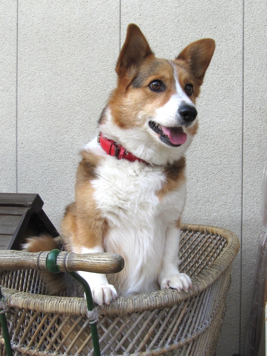 どうして犬のために乳母車を買ったのか、というあたりのことは語りはじめると長くなりますから省略いたしまして、氷川瓏の小説に出てきたのはさしずめこんなのででもあったろうかと思われる籐製ユーズドの乳母車から身を乗り出し、拙宅の横の道を近所の犬が飼い主とともに遠ざかってゆくのを見送っているところを一枚。
