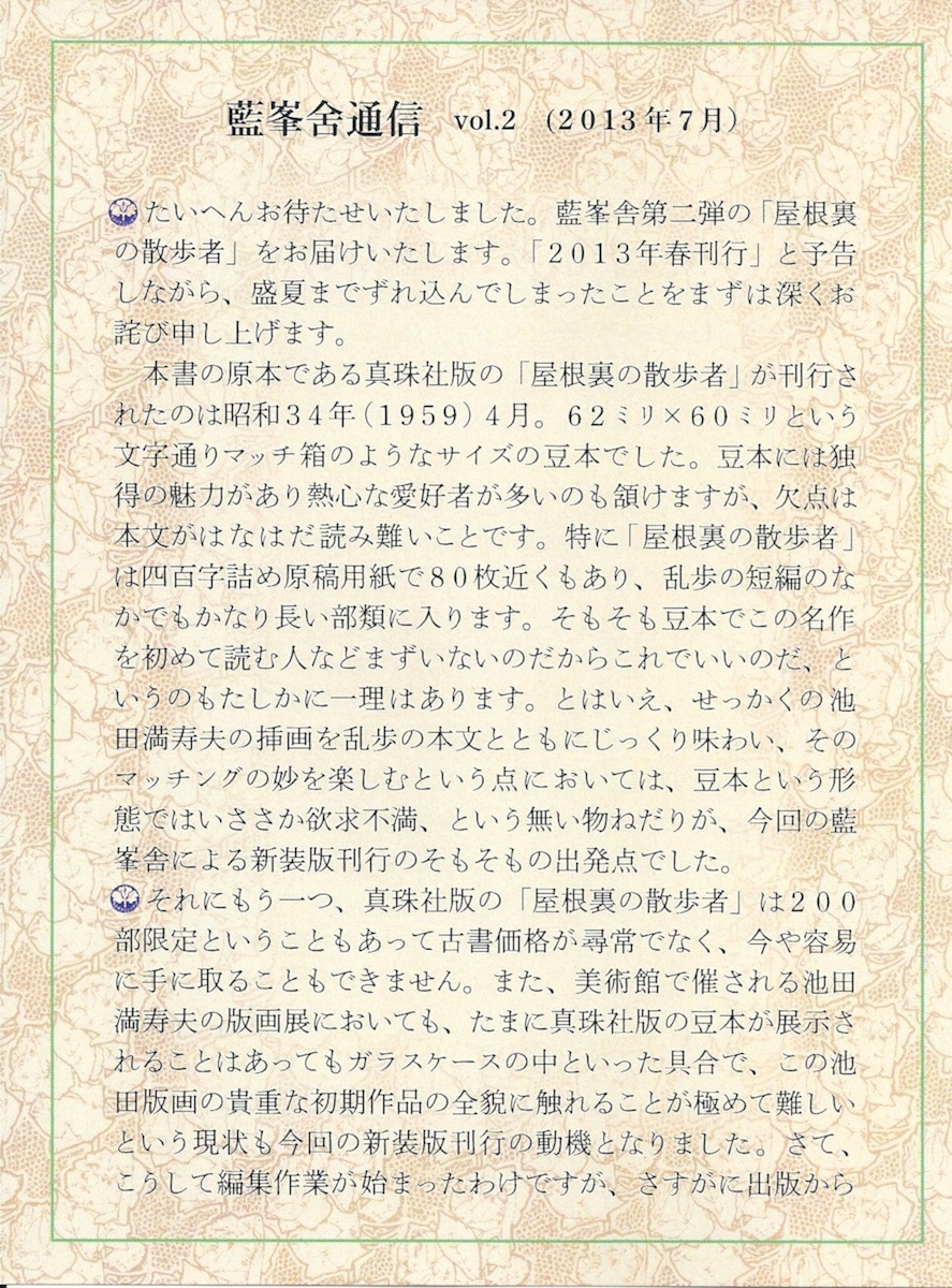 ▼そのあたりの苦労話は『屋根裏の散歩者』にもれなくついてる「藍峯舎通信」第二号でどうぞ、とA面だけ無断転載。