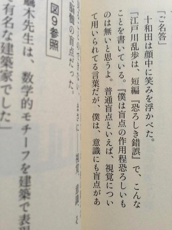 メールで教えていただいた情報ですが、4月に刊行された周木律さんの『眼球堂の殺人』に乱歩への言及があるそうです。