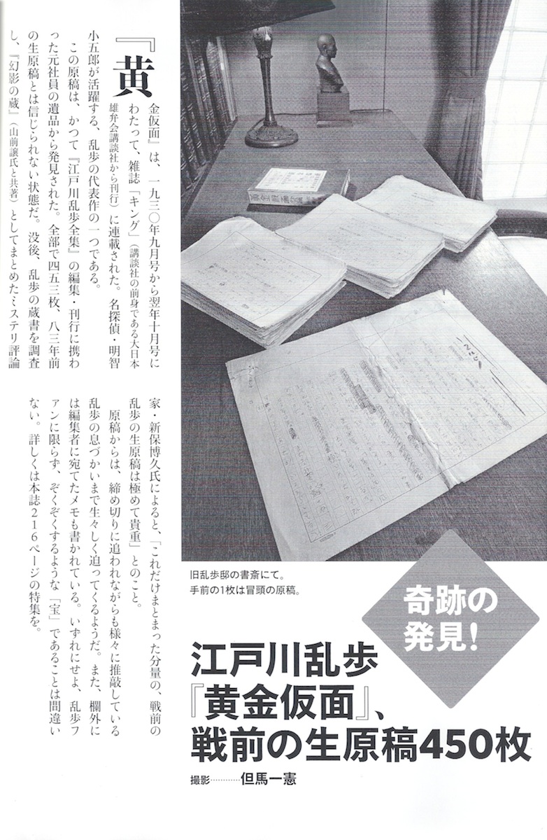 奇跡の発見! 江戸川乱歩『黄金仮面』、戦前の生原稿450枚