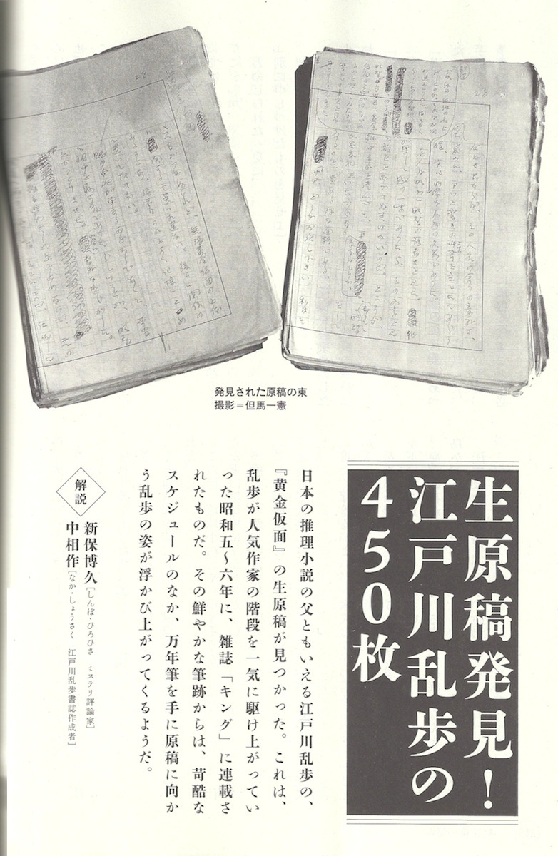 生原稿発見! 江戸川乱歩の450枚