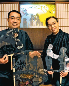 新作の影絵劇を作った角田夫妻=名張市中町で