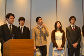 【学生考案の旅行商品を発表する立教大学観光学部の学生ら=東京都中央区の三重テラスで】