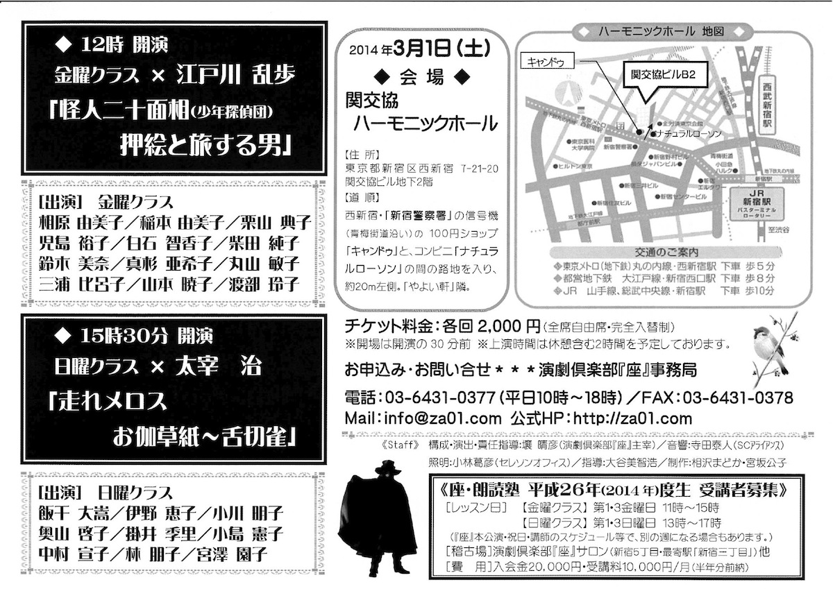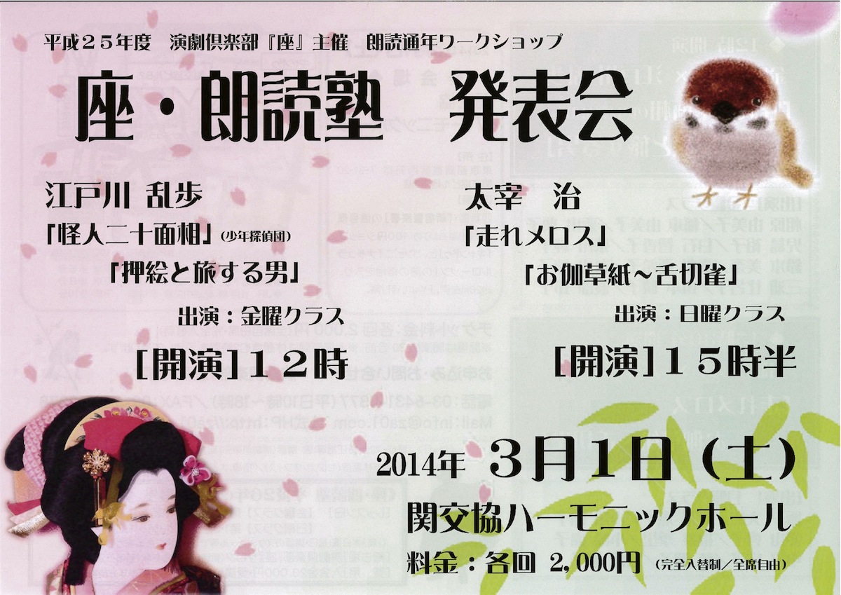 演劇倶楽部『座』:ワークショップ > 通年朗読ワークショップ 『座』朗読塾