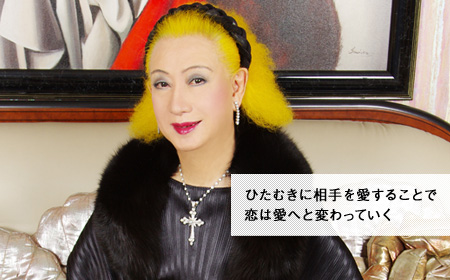 美輪:愛は相手本意で、自分がありません。待ち合わせの話でいうと、待たされている自分のことはどうでもいい。つまり、自分のプライドや立場なんて考えもしないんですよ。相手が来なかったとしても、「ひょっとして仕事の都合で無理させたんじゃないだろうか?」「電車とホームの間に足でも突っ込んだんじゃないかしら?」と思いやって心配する。相手の見た目も気にしないから、ちょっと不細工だったり頭がハゲていたりしても、とにかく元気で生活してくれさえいれば、それだけで充分な幸せを感じられる。つまり愛は「無私の精神」なんですよ。ですから恋愛中というのは、「恋の国」と「愛の国」の間に掛けられた橋を行ったり来たりして揺れている状態。でもね、橋を渡って愛の国の奥に辿りつくことができれば、もうその橋はいらないんですよ。