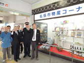 【名張市物産コーナーのリニューアルを祝う関係者たち=名張市の近鉄名張駅で】