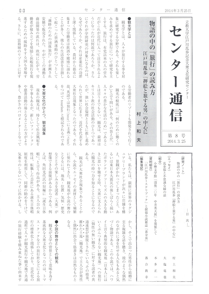 平成26・2014年3月25日 立教大学江戸川乱歩記念大衆文化研究センター