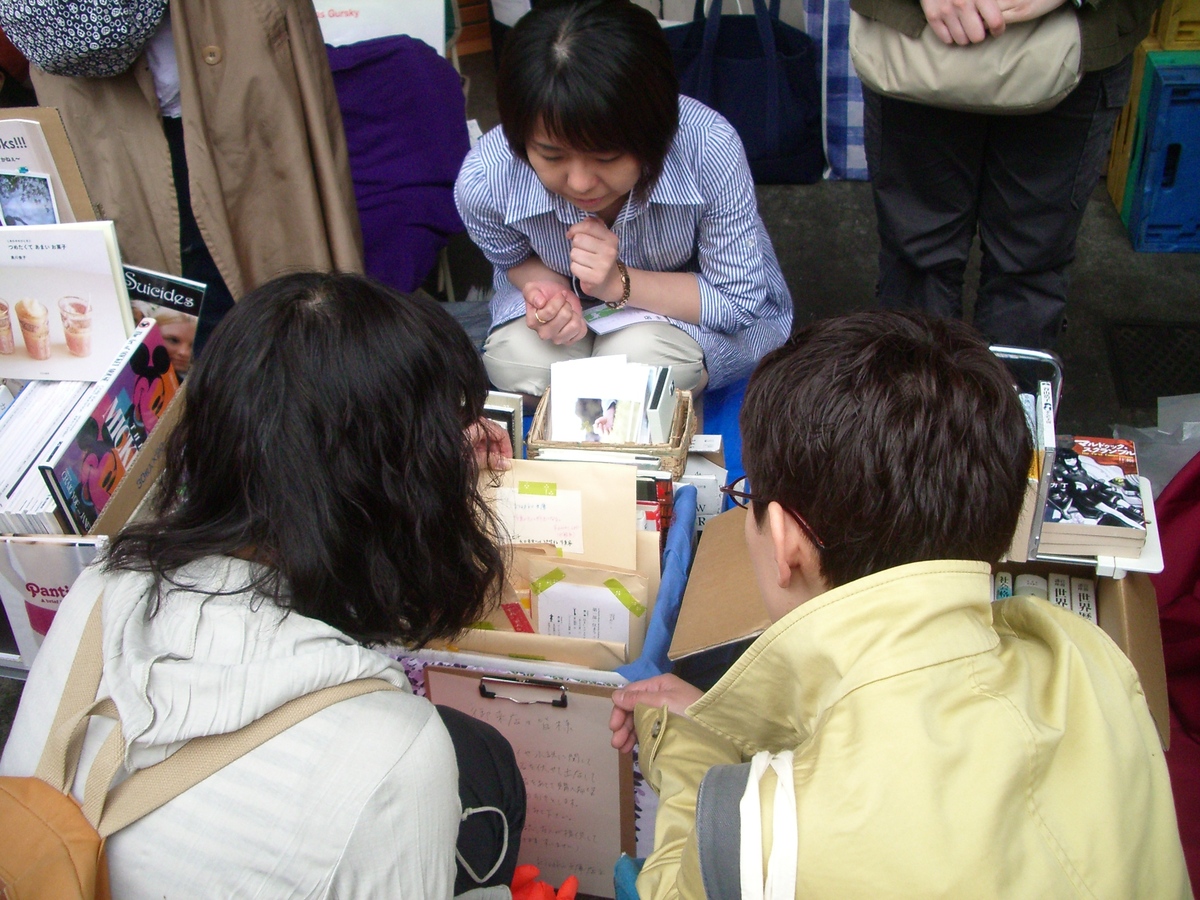 「なんでやってくれるんですか?と聞くと、楽しいからと言われます。職場や学校で、本の話をする機会がない。大学生にいたっては、変わった人みたいに思われる。でも、一箱古本市だったら、若い人と70代のおじいさんが普通に江戸川乱歩の話なんかをしています」。本を媒介としたコミュニケーションが、一箱古本市の魅力なのだ。