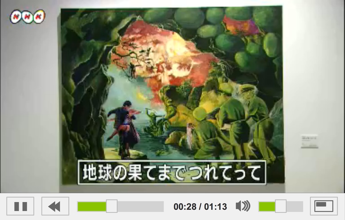 展覧会では横尾さんが子どもの頃に見た景色や愛読書、それに映画から受けたインスピレーションをもとに空想の世界を描いた絵画約90点が展示されています。