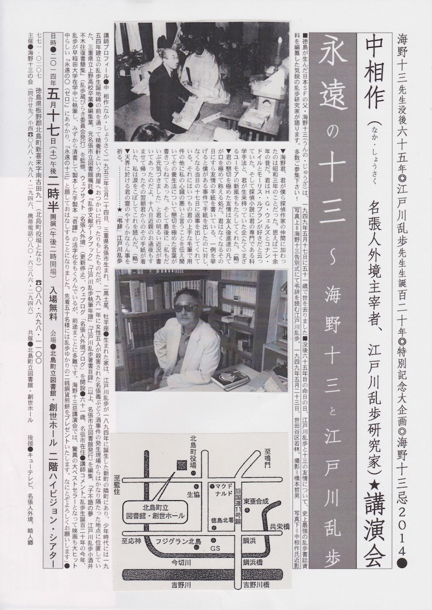 演題:永遠の十三 海野十三と江戸川乱歩