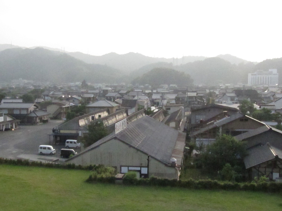 城址からながめた出石のまち。